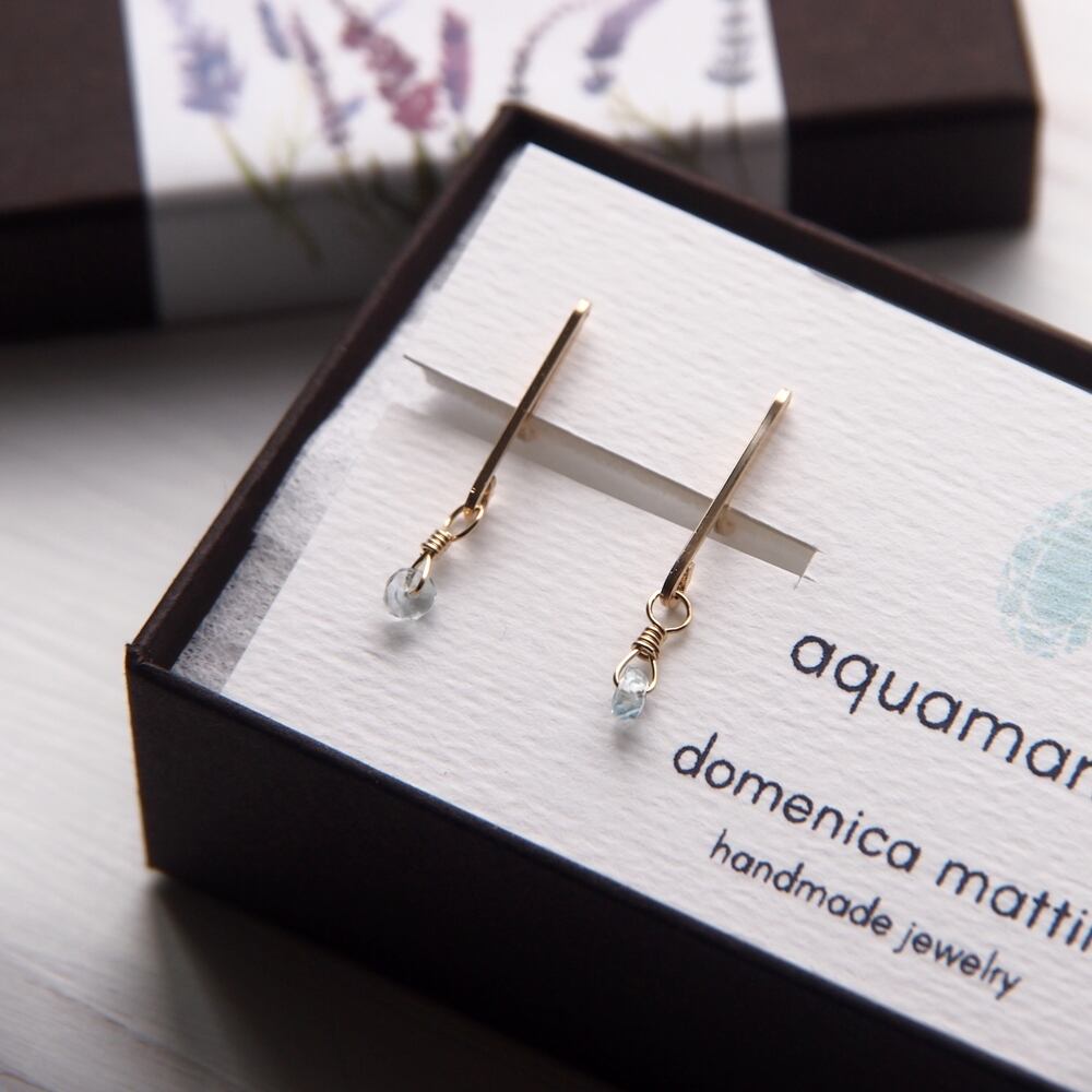 アクアマリン(3月誕生石) ×シンプルラインイヤリング